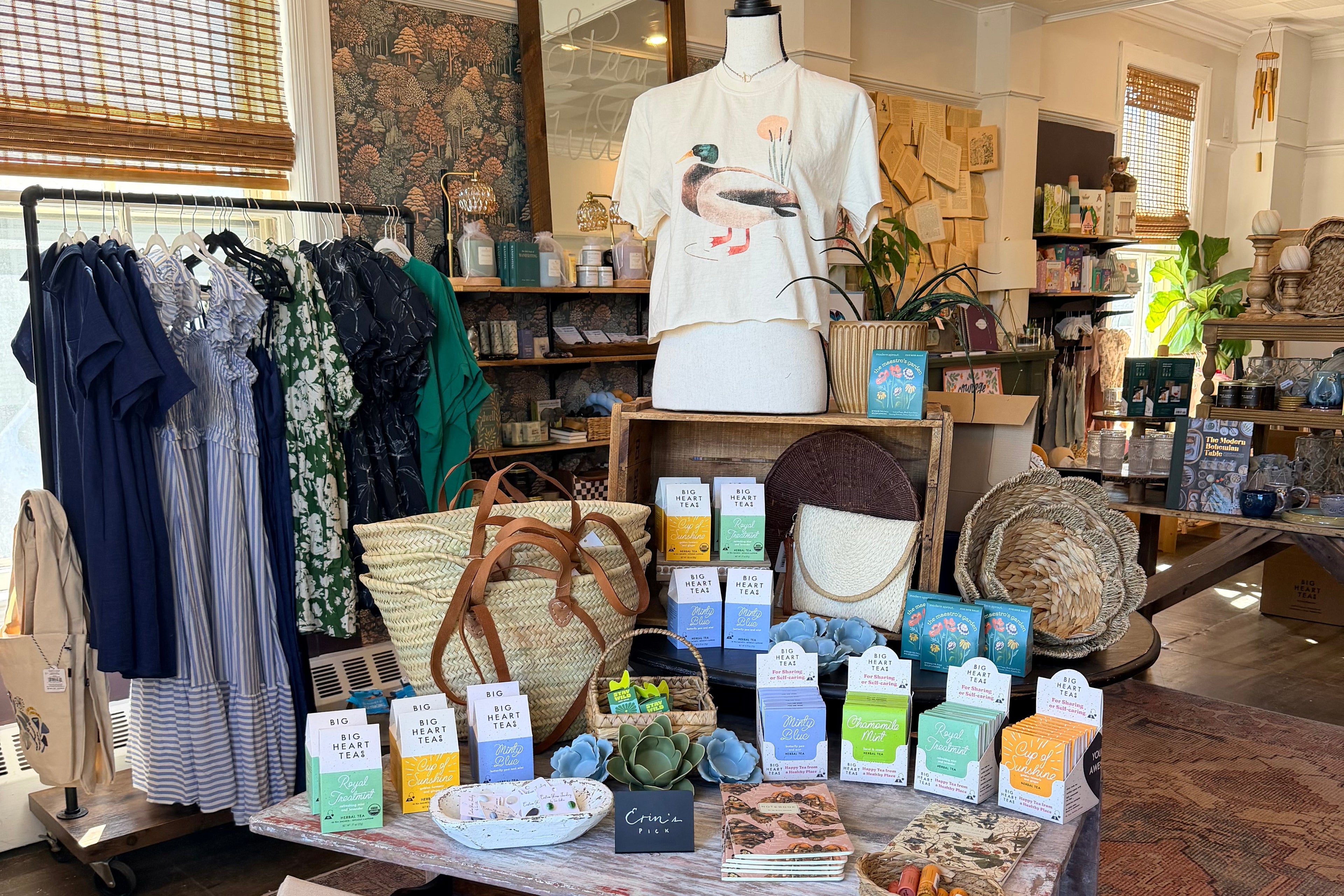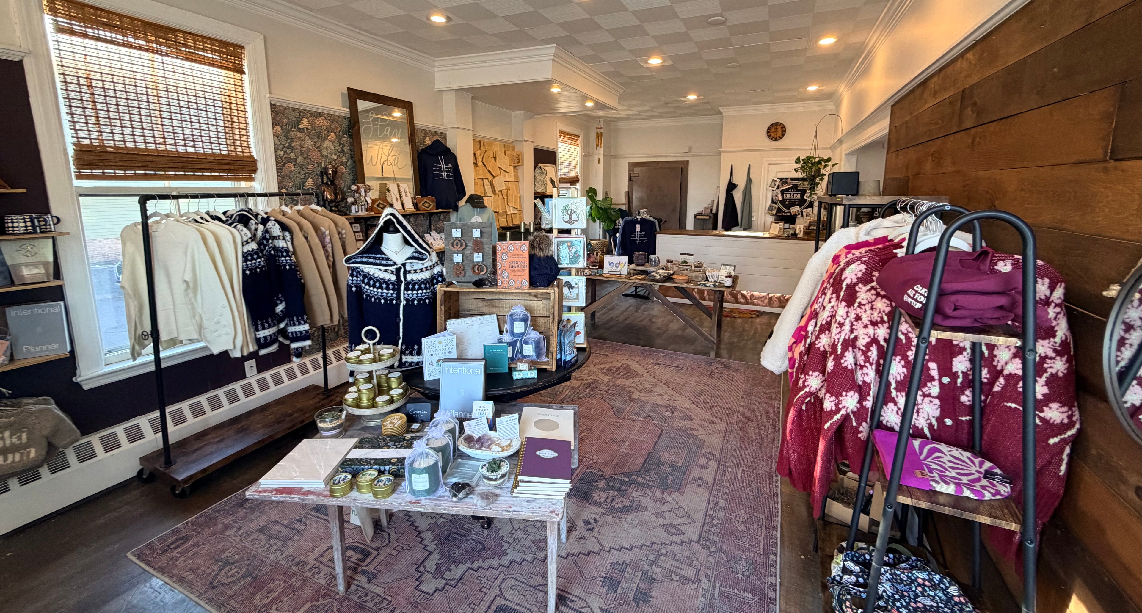 On this side of our historic downtown space, the shelves are filled with treasures from local and independent makers—apothecary treats, cozy apparel, artful accessories, and unique home goods—each chosen with intention and heart.