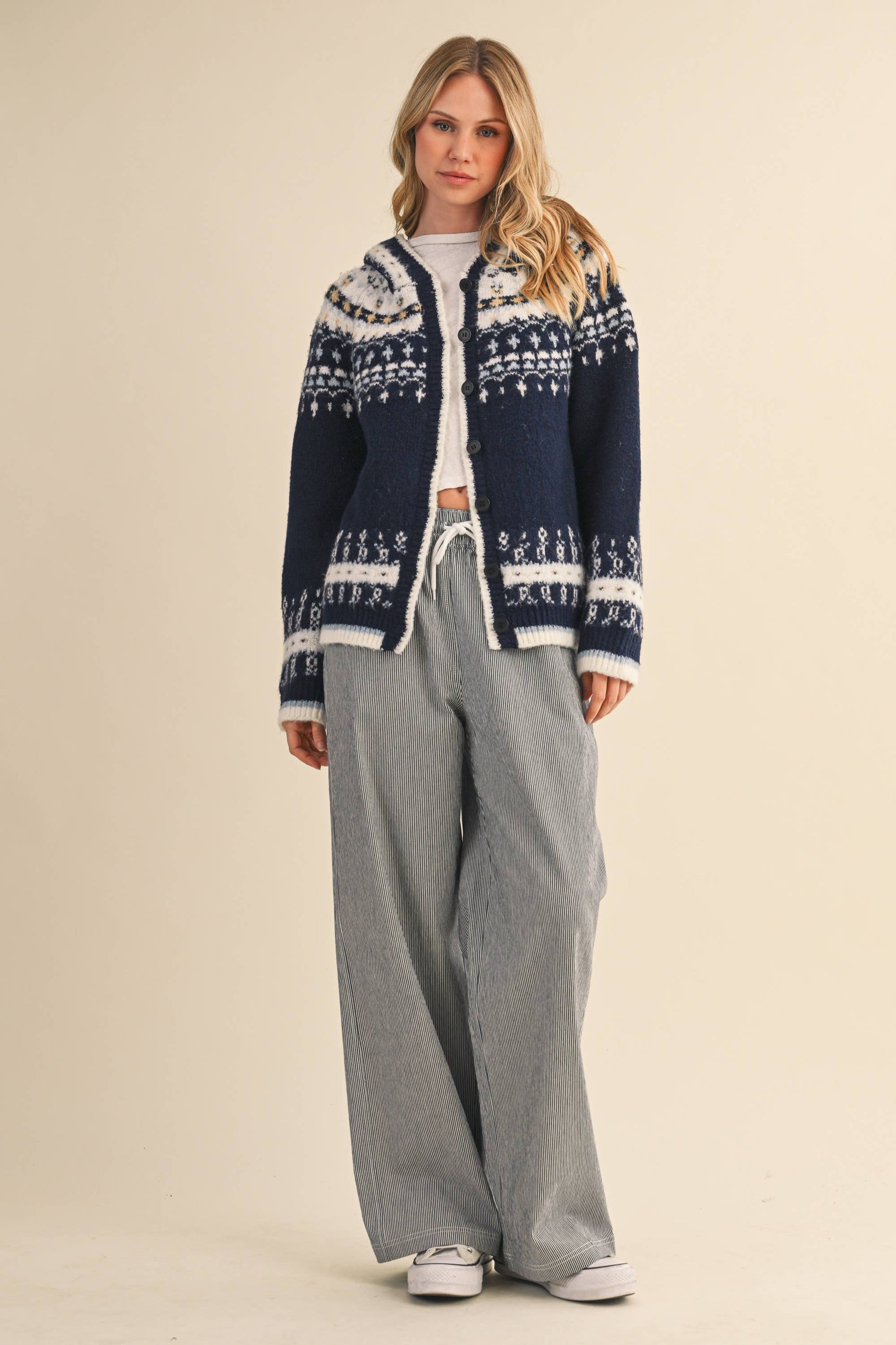 Nordic Soft Button Down Sweater Hooded Jacket. 29% AC 68% POLY 3% SP.