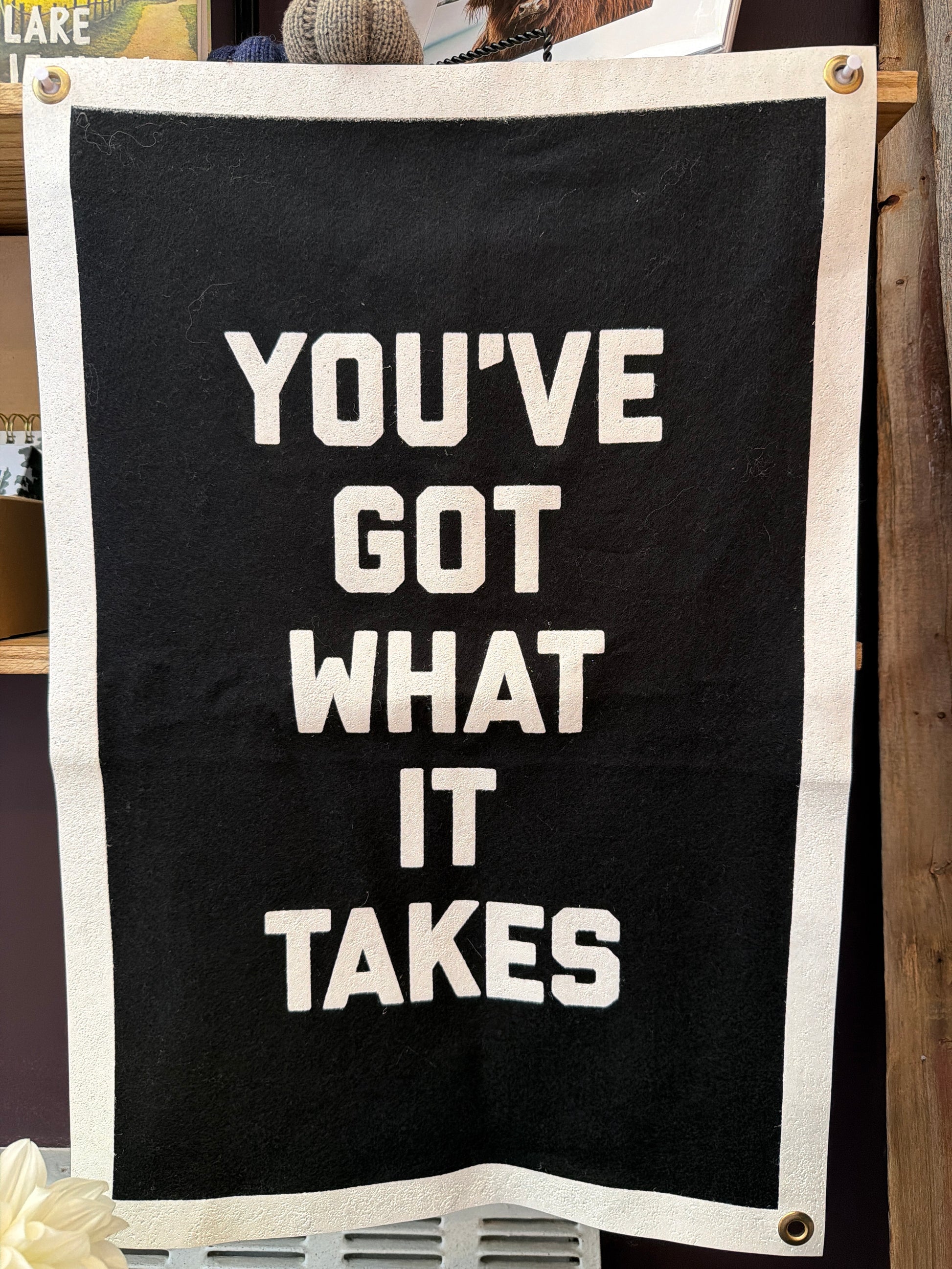 Don't ever forget that you've got what it takes! This vintage inspired black felt banner is screen printed by hand locally in Saint Louis.